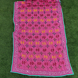 Description: A lightweight pink georgette dupatta with intricate floral hand embroidery, keeping it stylish and simple with sequins on the border. This Parsi dupatta is vibrant, stylish and easy to carry. Pair it with any solid kurta or lehenga.