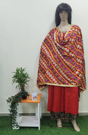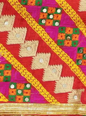 Yet another sparkly phulkari dupatta with threadwork and a pretty blend of multicolored threads for a dazzling look. Ideal for all occasions.