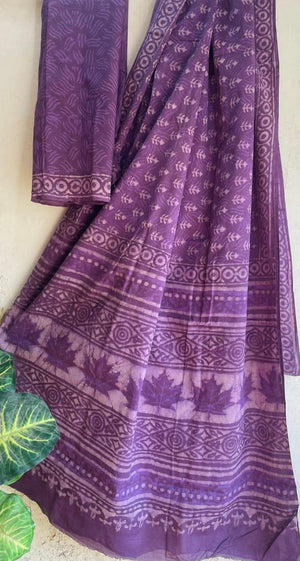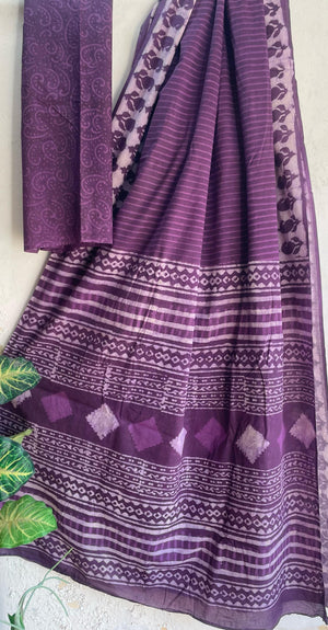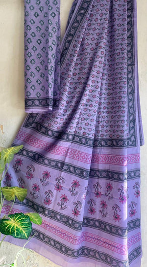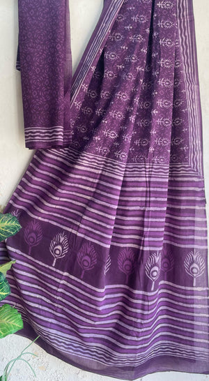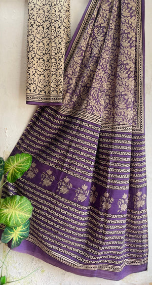 Bagru Hand Block Printed saree- Pure Cotton - purple