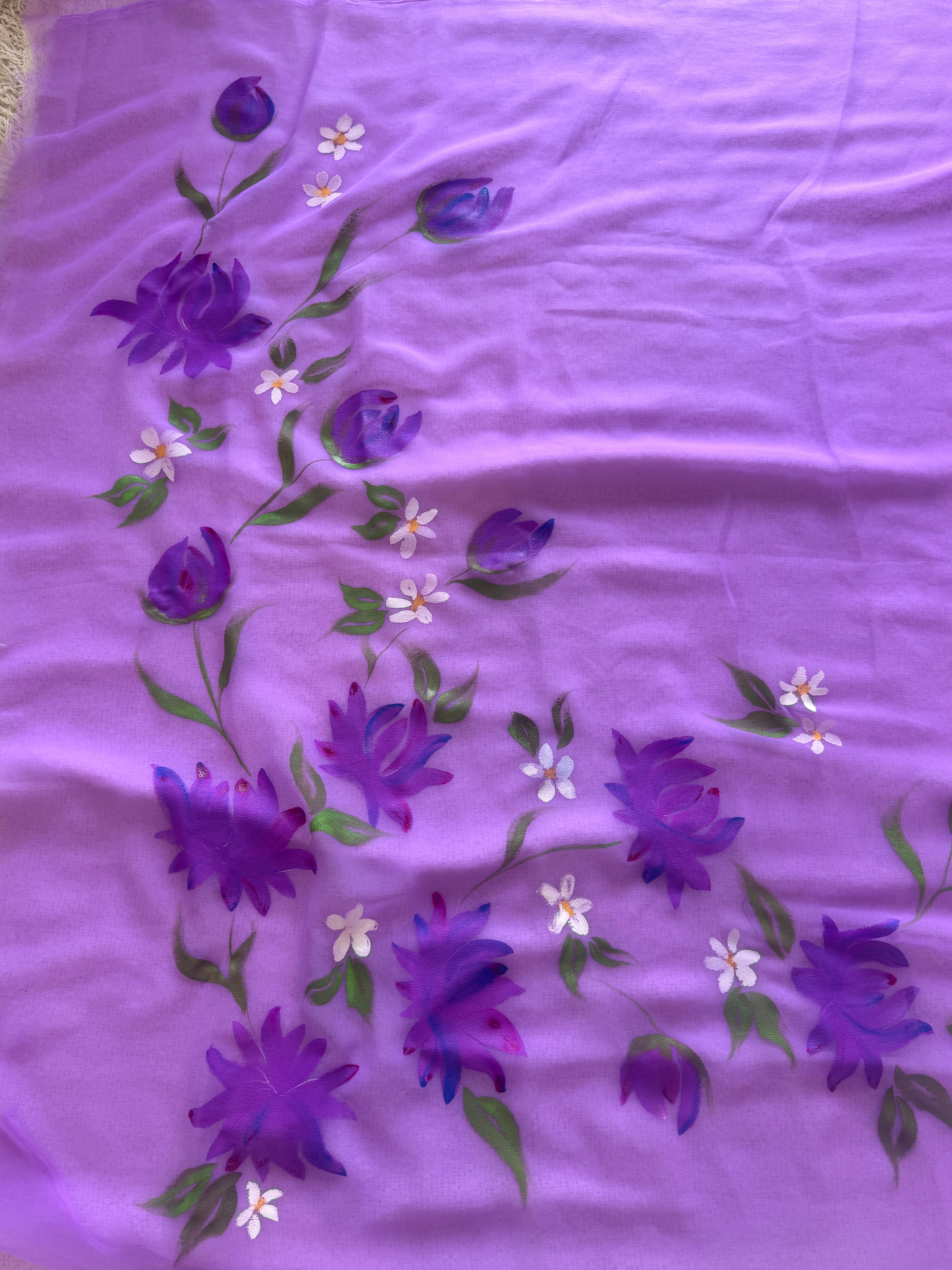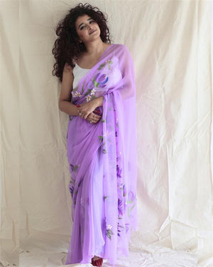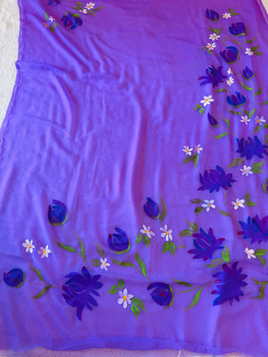 Hand-Painted chiffon Saree - Purple