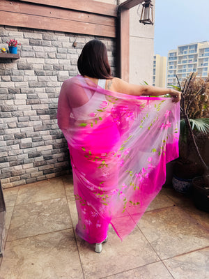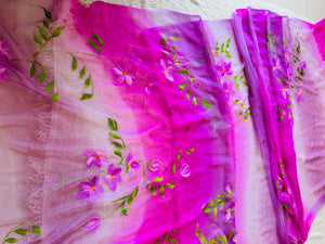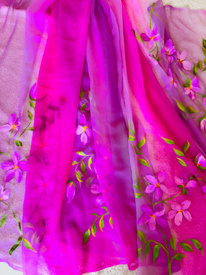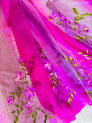 Hand Painted Chiffon Saree with Dual Pink - Customisation Available (On any colour of your choice))