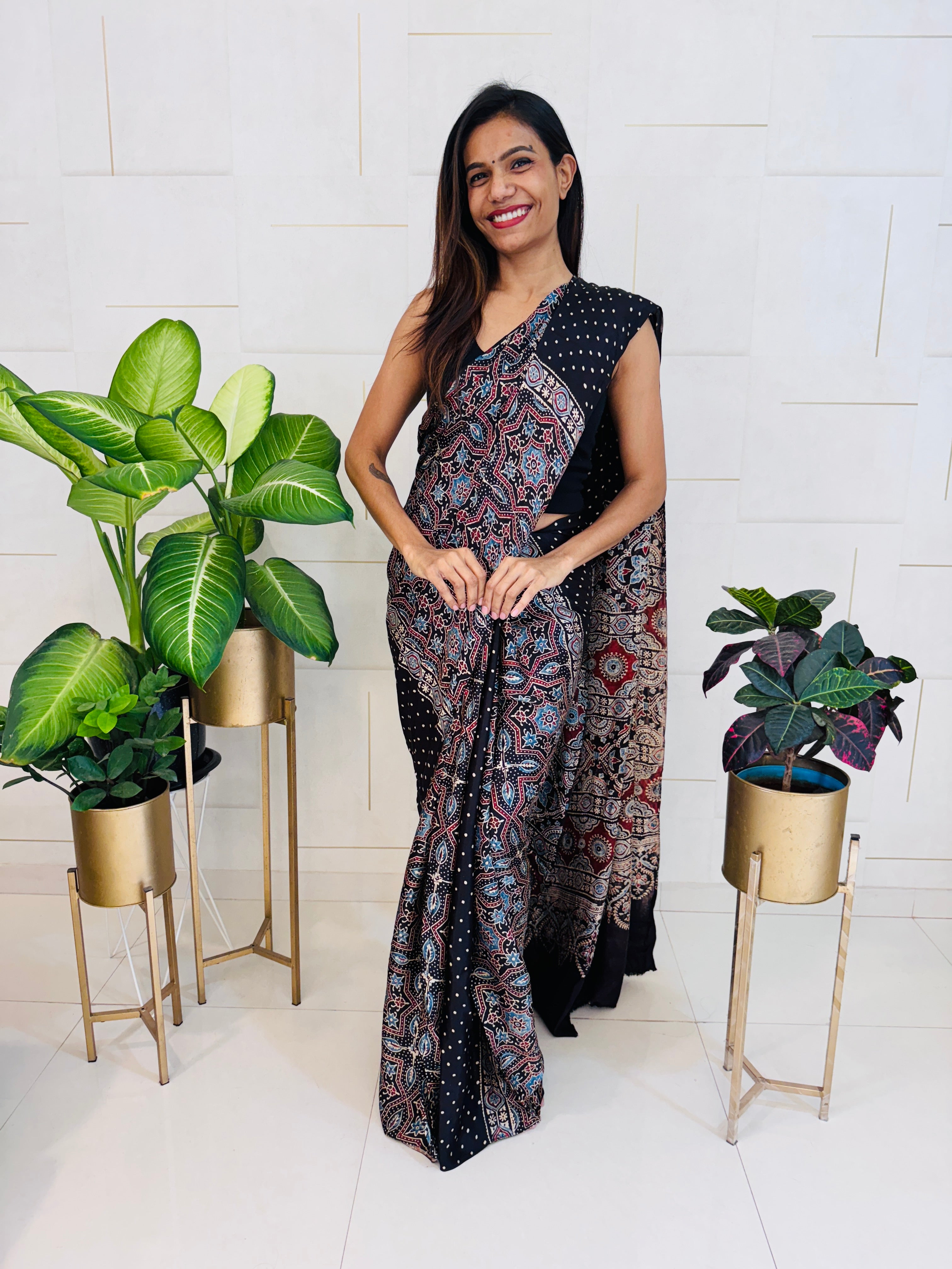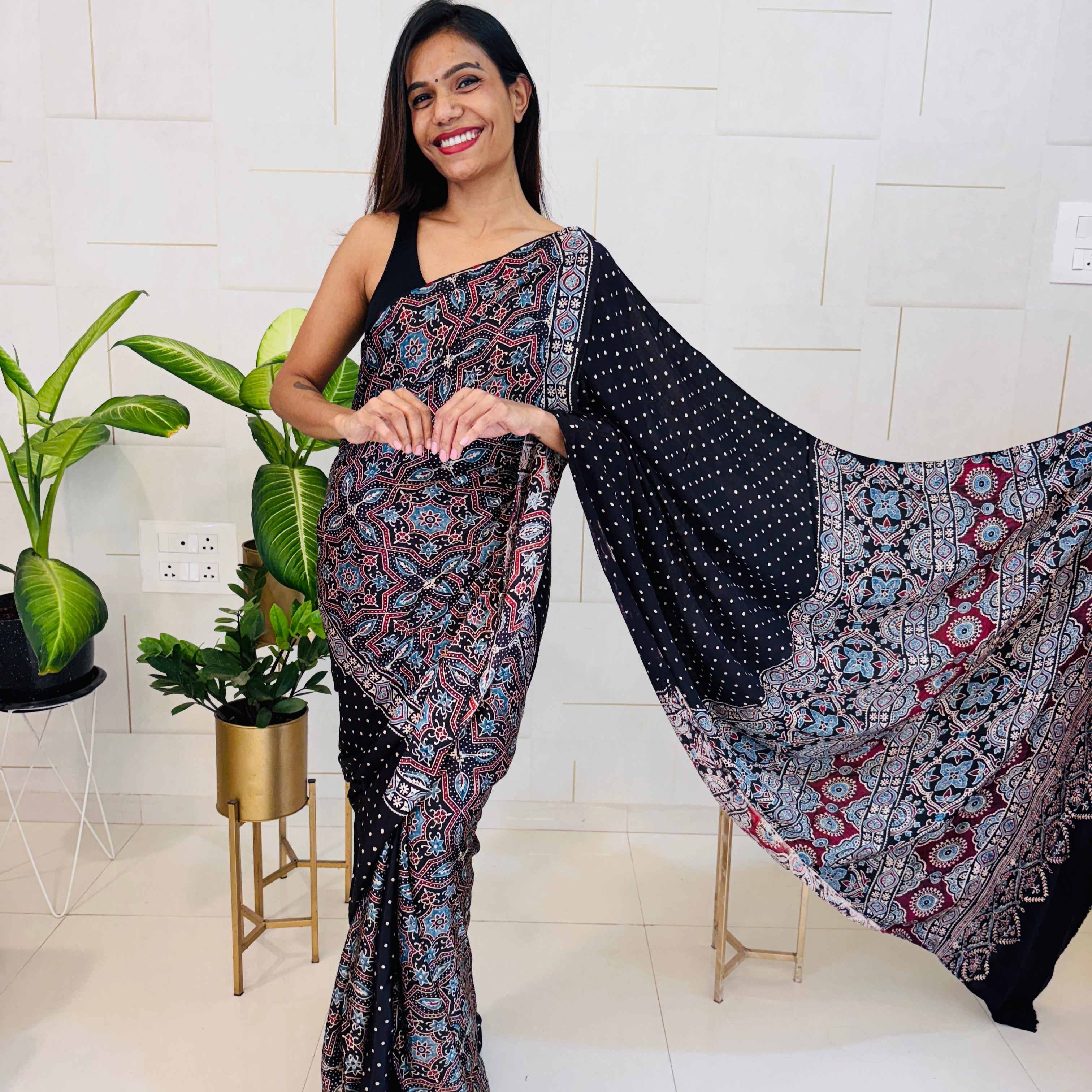 | Fabric | Modal Silk, Ajrakh Print |