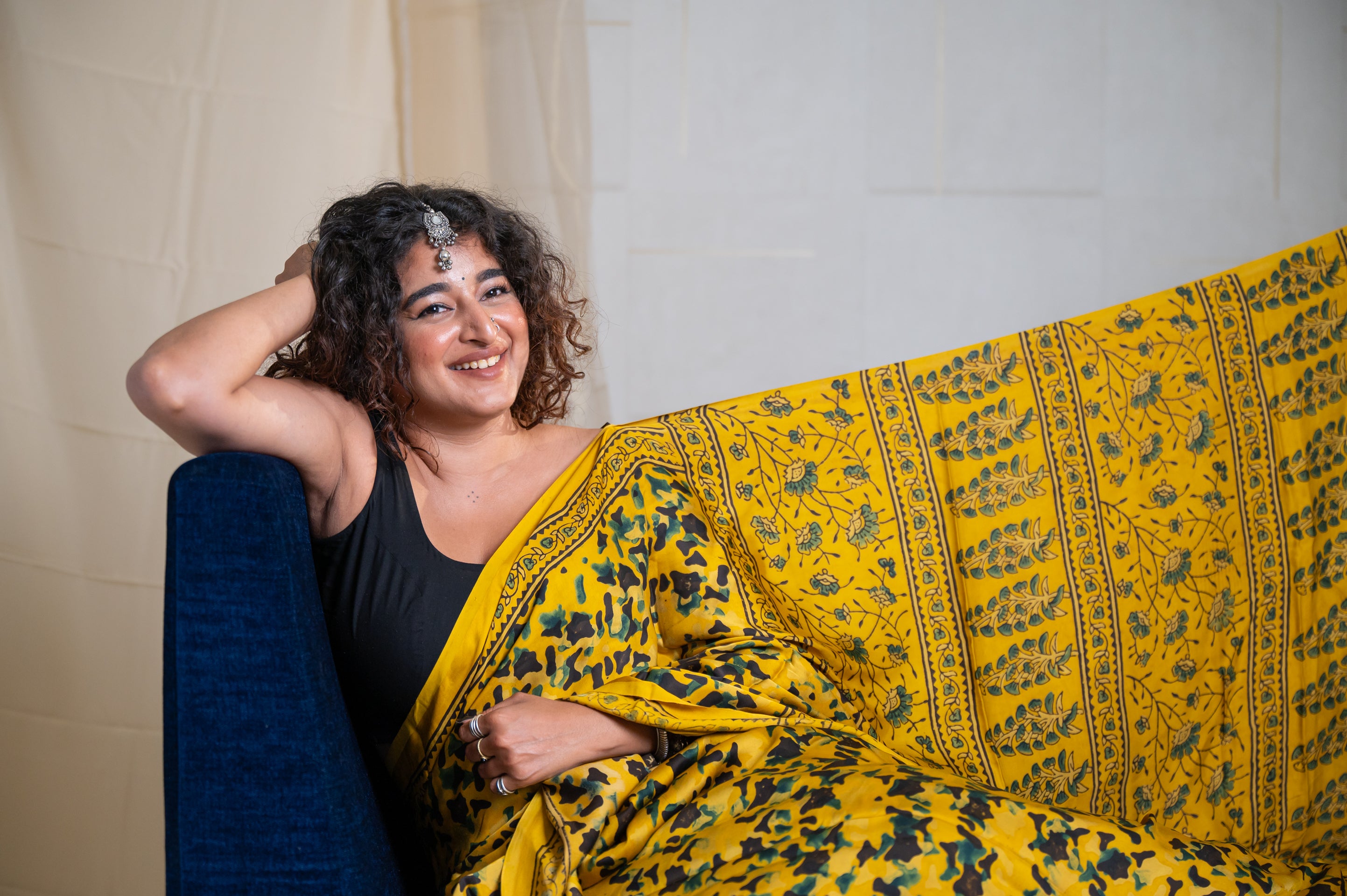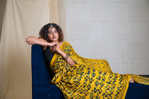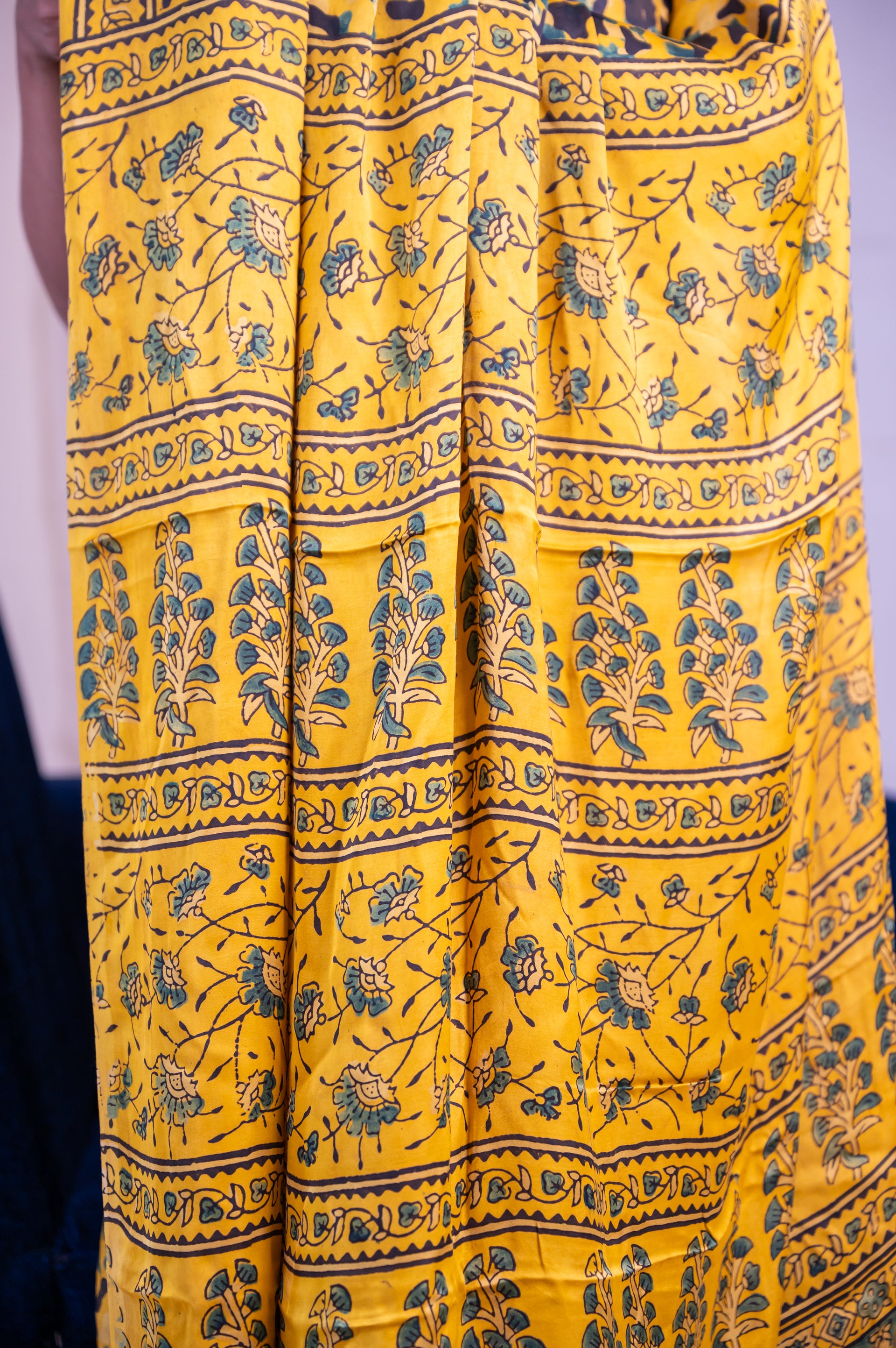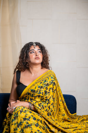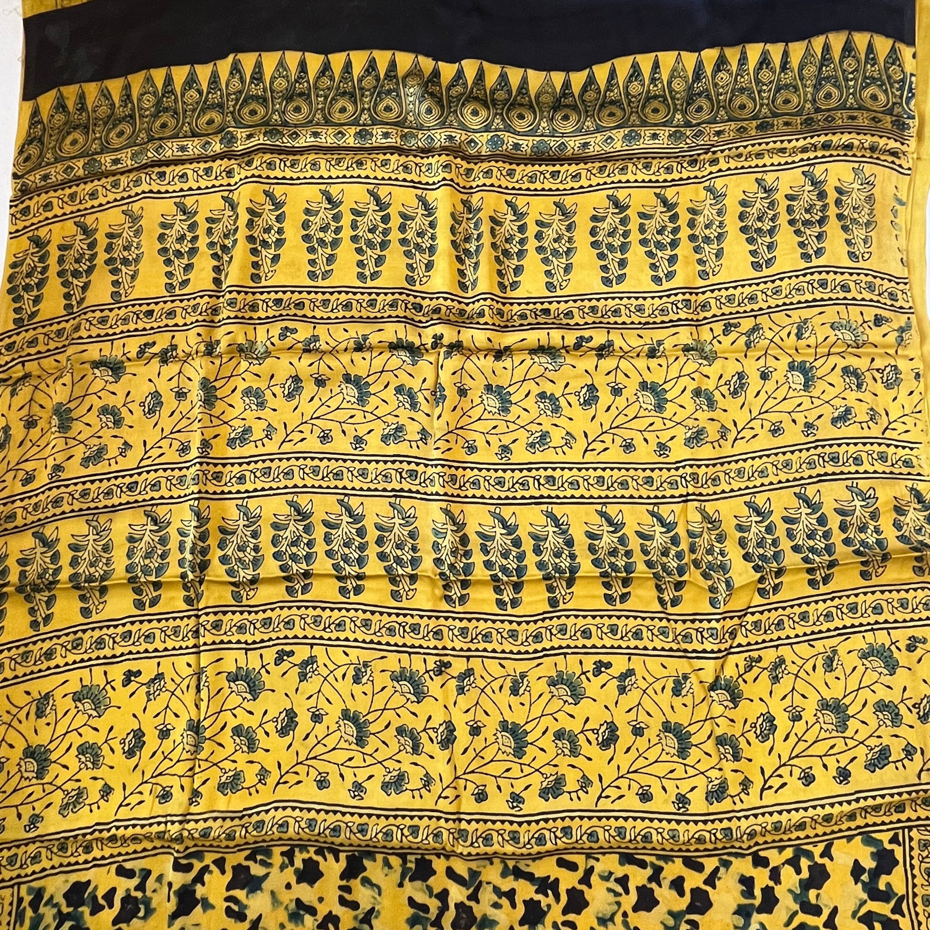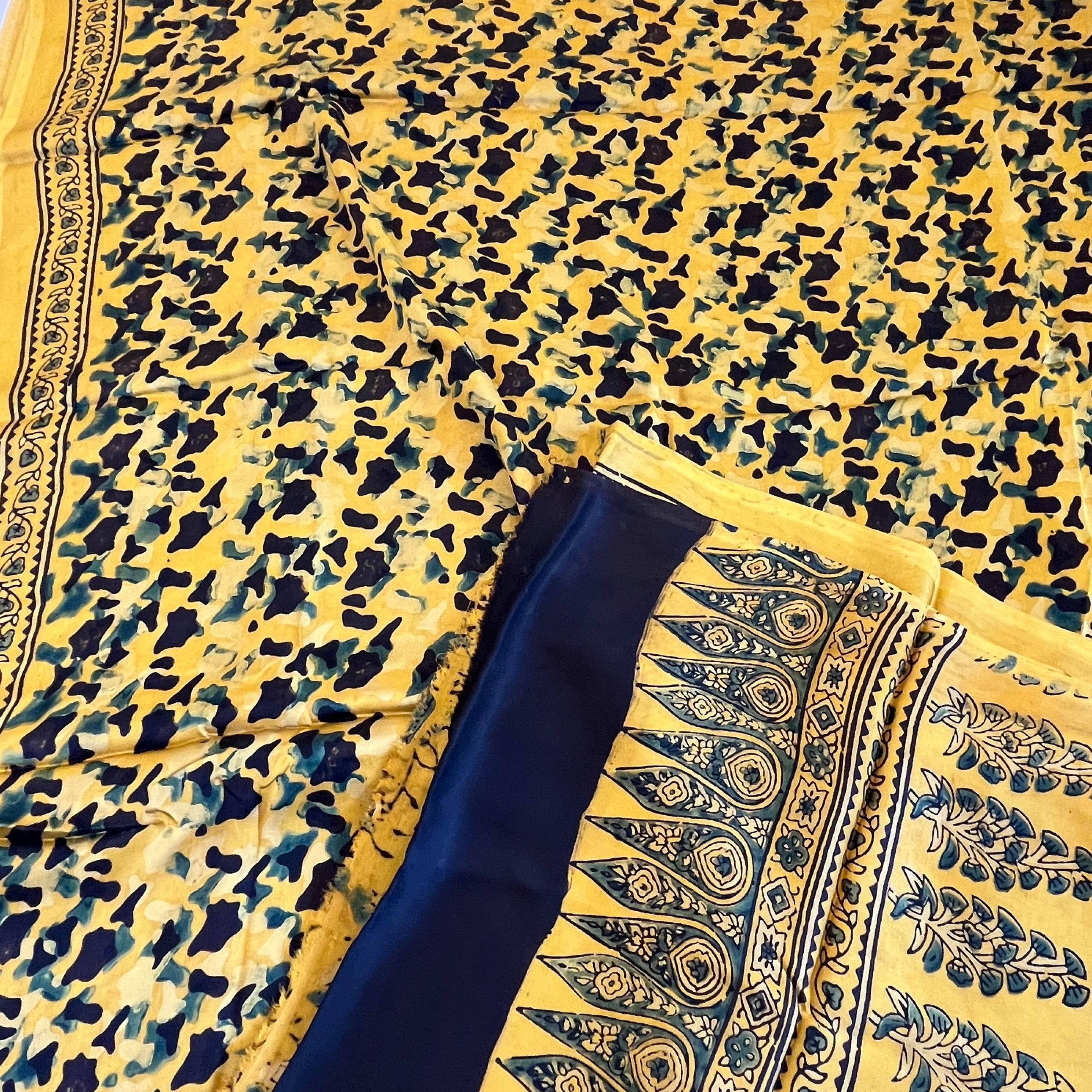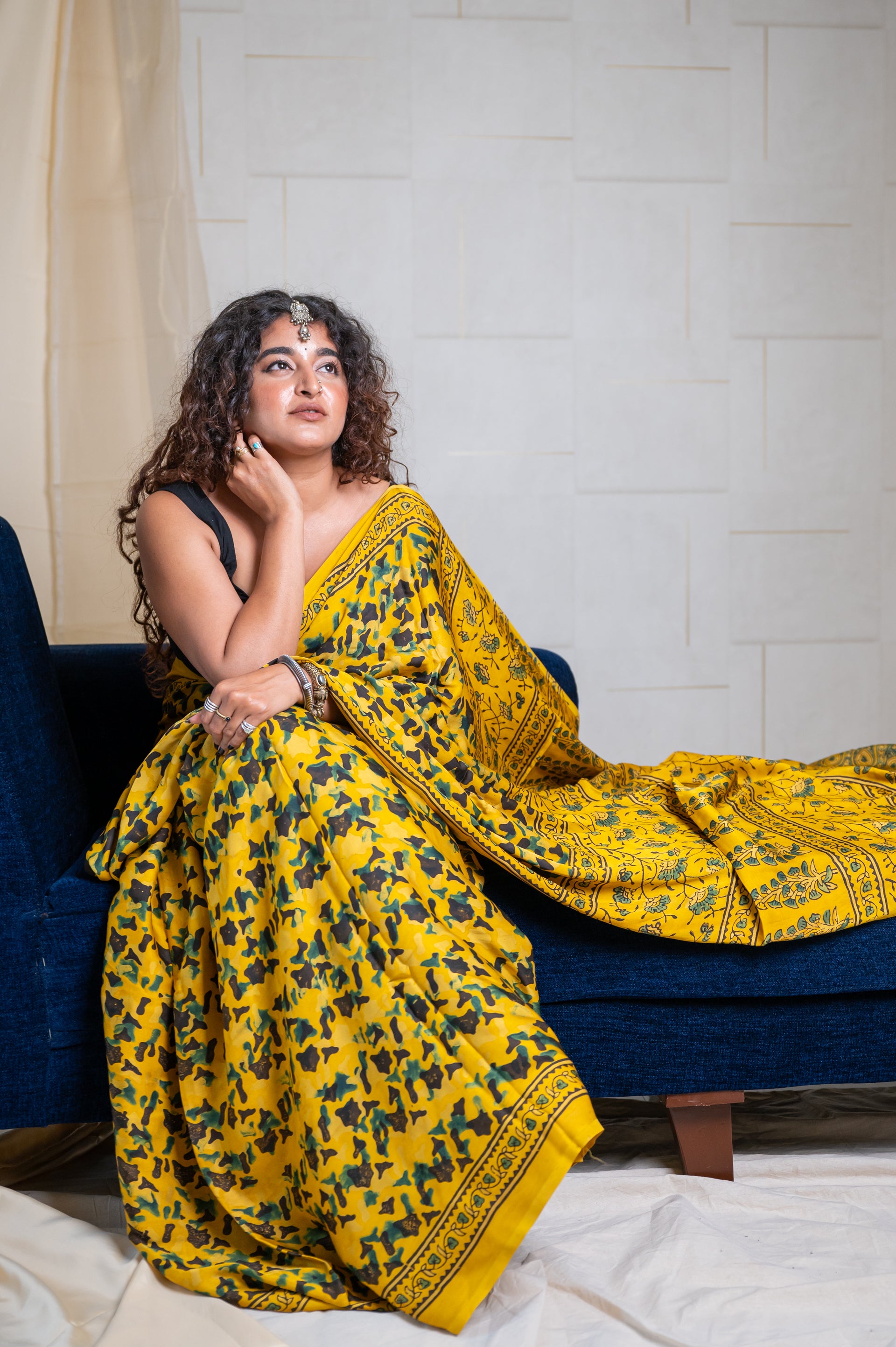 Modal Silk Ajrakh Saree With Natural Dyes - Yellow