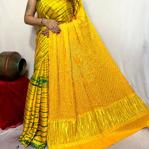 Modal Silk Leheriya Saree with Tie and Die and sari Pallu - Golden, Olive, Yellow, Blue, Red, Mango, Teal