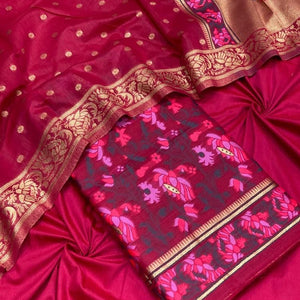 Banarasi Cotton Silk Unstitched Salwar Suit Fabric - (Different Colours Available)