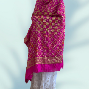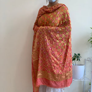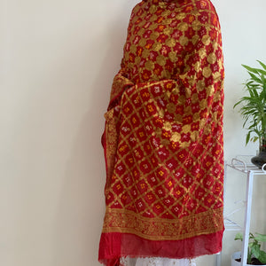 Kindly note this dupatta is crinkled due to the craft and may need roll-press as per needs. The size of the dupatta may seem smaller than actual due to the bandhej work.