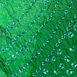 Curate the perfect look with this green Bandhani dupatta handcrafted lovingly by our rural artisans. The Bandhani print makes it an excellent formal and informal party wear. It can be paired with a kurta set or lehenga. Carry this Bandhani dupatta and see the magic evoked.
