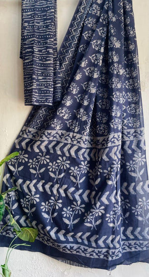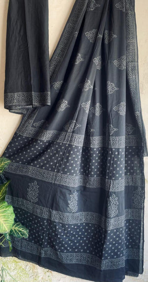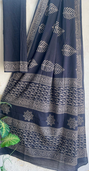From the village of Bagru, comes this beautiful, light and hand crafted Mul Cotton Saree. Perfect for a casual day to beat the heat and yet look charming and stylish.
