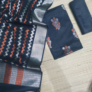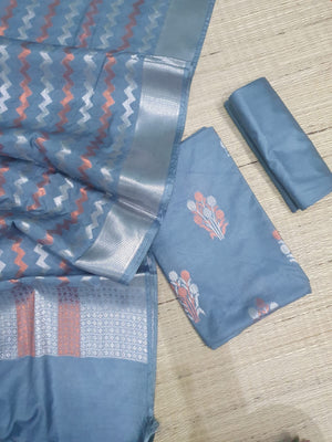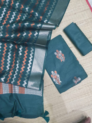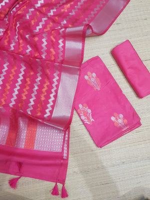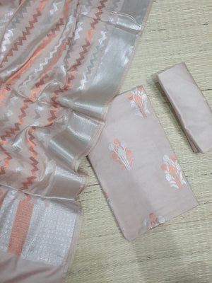 Banarasi Unstitched Suit Material Chiniya Silk with Meena Jari work - Black, Beige and various colours available