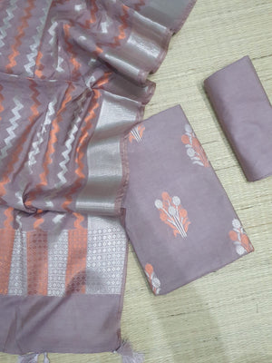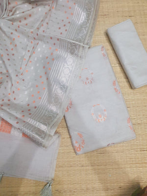 Dupatta has design woven meticulously by skilled artisans in Banarasi style with an elegant border at the bottom. Together this set makes a very eye-catching wear. It is comfortable and classy. Accessorising it with just a pair of earrings is enough to uplift your appearance.