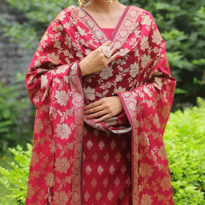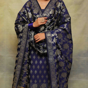 Banarasi Karan Silk Unstitched Suit Material With Woven Jari Dupatta - Red, Blue, Green, Black