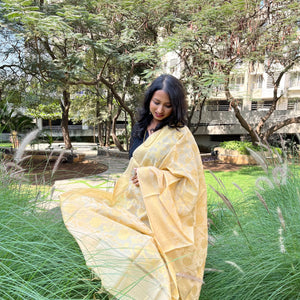 Description: We bring to you an all-time classic banarasi cotton silk dupatta, specially woven with all over jaal zari just enough to add a touch of classiness to your ethnic outfit.