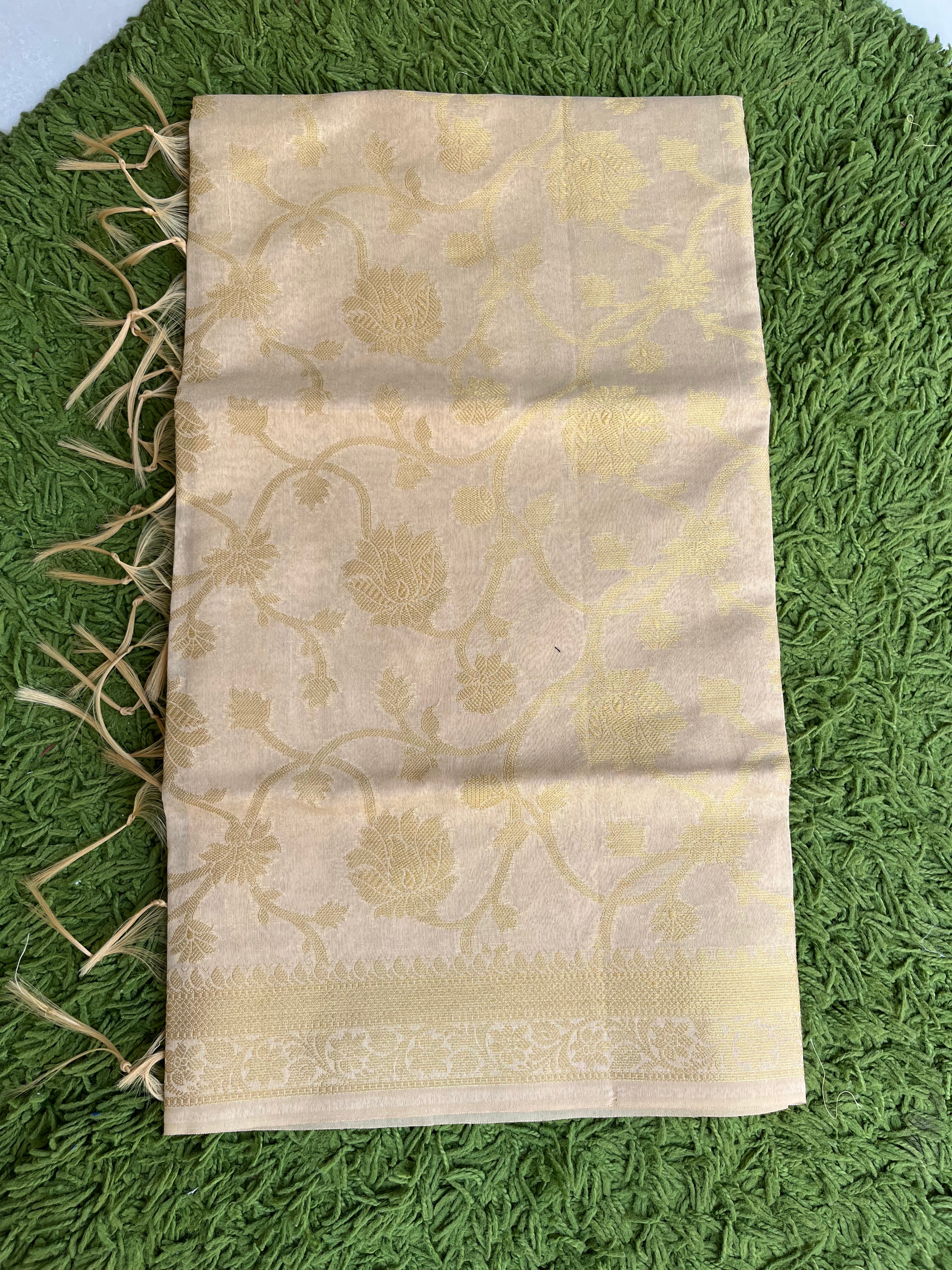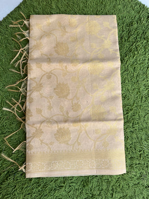 Banarasi Cotton Silk Dupatta With Floral Jaal In Zari - Beige Gold