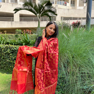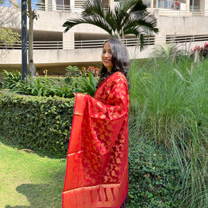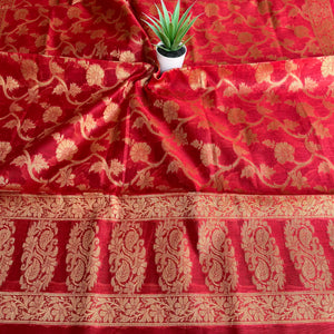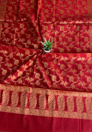 Banarasi Cotton Silk Dupatta with Floral Jaal - Red