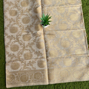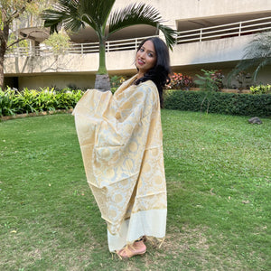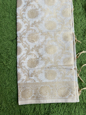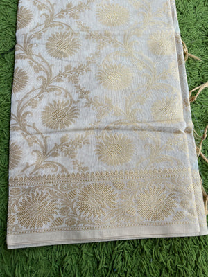 Banarasi Cotton Silk Dupatta with Floral Jaal - White and Gold