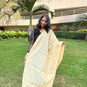 We bring to you an all-time classic banarasi cotton silk dupatta, specially woven with all over jaal zari just enough to add a touch of classiness to your ethnic outfit.