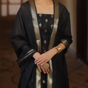 Banarasi Cotton Silk Unstitched Salwar Suit Fabric -Black With Embossed Jari
