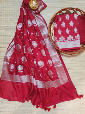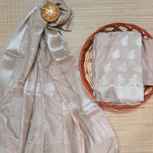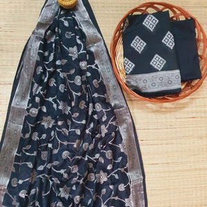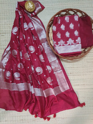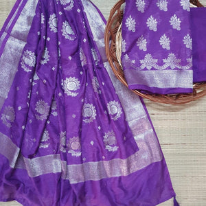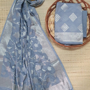 Dupatta has floral design with an beautiful border woven meticulously by skilled artisans in Banarasi style with an intricate border at the bottom. Together this set makes a very eye-catching wear. It is comfortable and classy. Accessorising it with just a pair of earrings is enough to uplift your appearance.