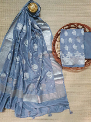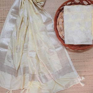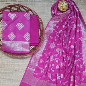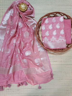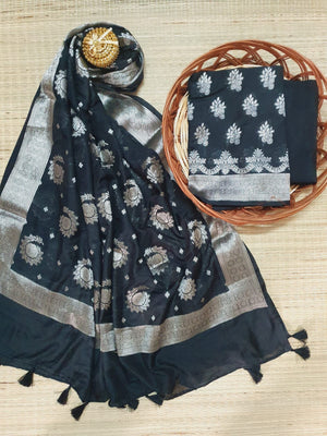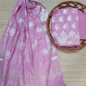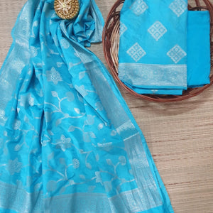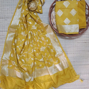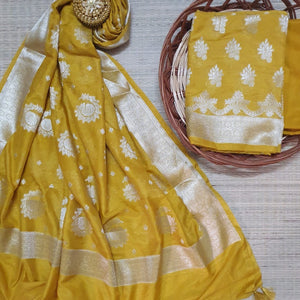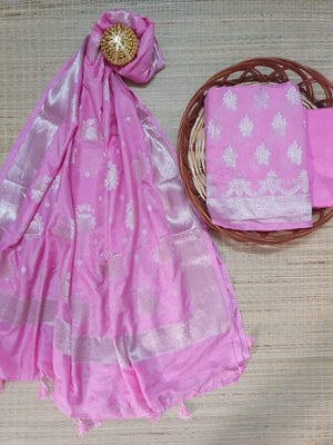 Banarasi Soft Chiffon Dyeable Unstitched Salwar Suit Fabric - Yellow, Grey, Blue, Black, Pink, Rani Pink