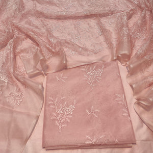 Banarasi Organza Silk Unstitched Salwar Suit Fabric - Pink, Peach, Blue, Green