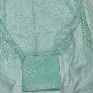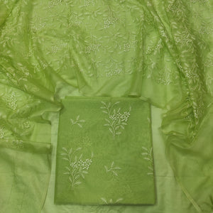 Mesmerising Organza Silk fabric with beautiful golden jari design with Resham embroidery with a plain cotton silk bottom. Kurta fabric has beautiful embroidery design to add glam.