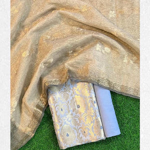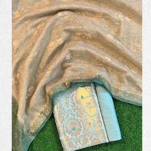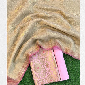 Banarasi Katan Silk With Tissue Unstitched Salwar Suit Fabric With Kimkhab Jari- Pink, Blue