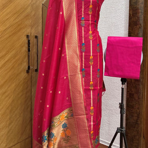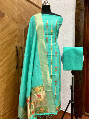 Banarasi Cotton Silk Unstitched Salwar Suit Fabric - Yellow and Gold