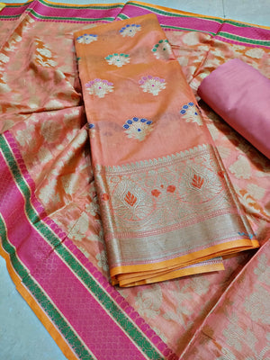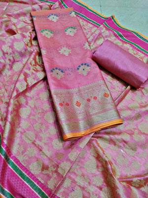 Banarasi Cotton Silk Unstitched Suit Material - Sea Blue, Pink, Peach, Green