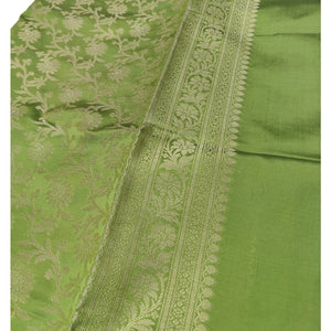 Banarasi Cotton Silk With Floral Pattern Jaal Dupatta- Light Green