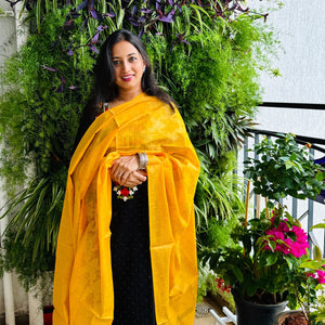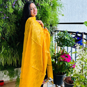 Banarasi Cotton Silk With Flower Butti Dupatta- Yellow