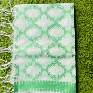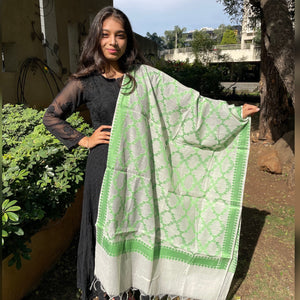 Banarasi Cotton Silk Woven Dupatta - White and Green