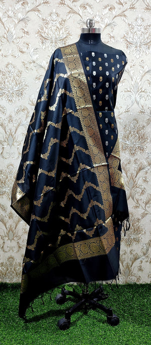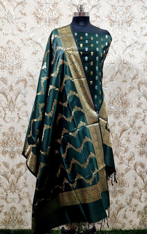 Banarasi Katan Silk Mix Unstitched Suit Material - Green, Blue, Black (Various Colours available)