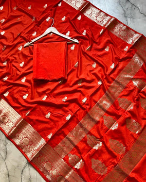 Banarasi Katan Silk Saree -Red, Pink More