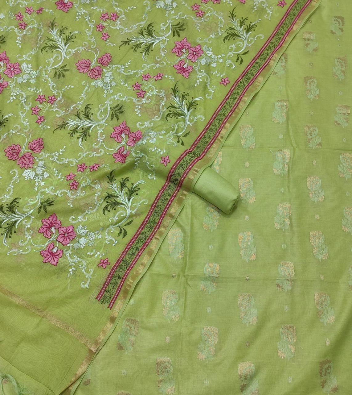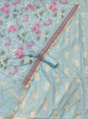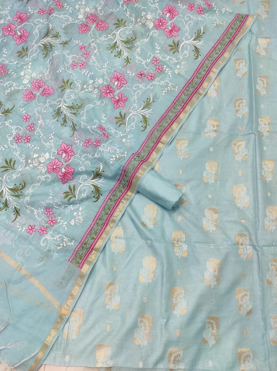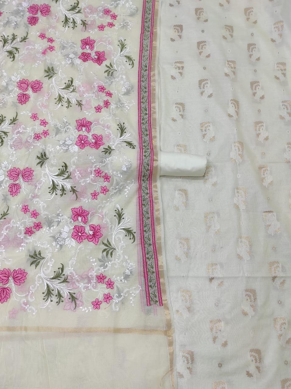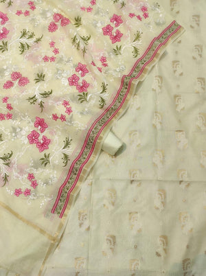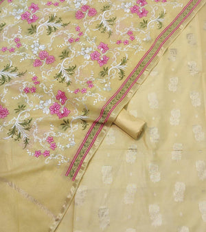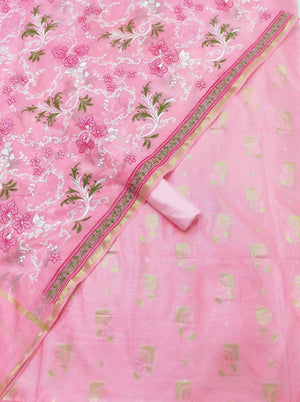 Banarasi Katan Silk With Tissue Unstitched Salwar Suit Fabric With Kimkhab Jari- Pink,Cream , Blue