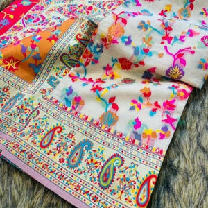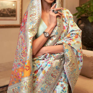 Banarasi Mercerised Silk Panchmeena Gulkari Saree- Sky Blue, Onion Pink, Black, Pista Green, White,