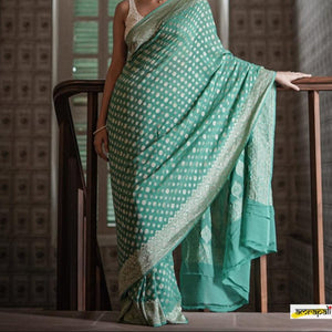 BANARASI PREMIUM SEMI GEORGETTE SILK BOOTI DESIGN WOVEN DYEBLE SAREES