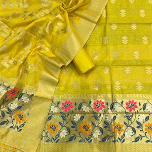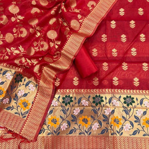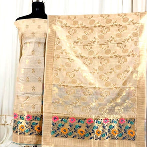 Banarasi Cotton jamdani Handloom Unstitched Suit Material - Red, Yellow, Blue, (Various Colours available)