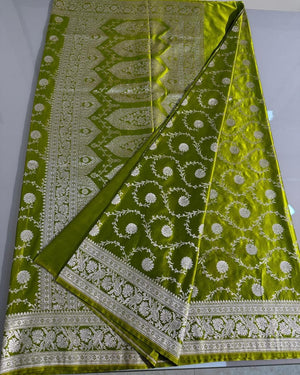 | Care | Dry clean only to maintain the lustrous sheen Elevate your wardrobe with the timeless elegance of this Pure Mashroo Silk Banarasi Handloom Saree, a perfect blend of heritage and luxury. |