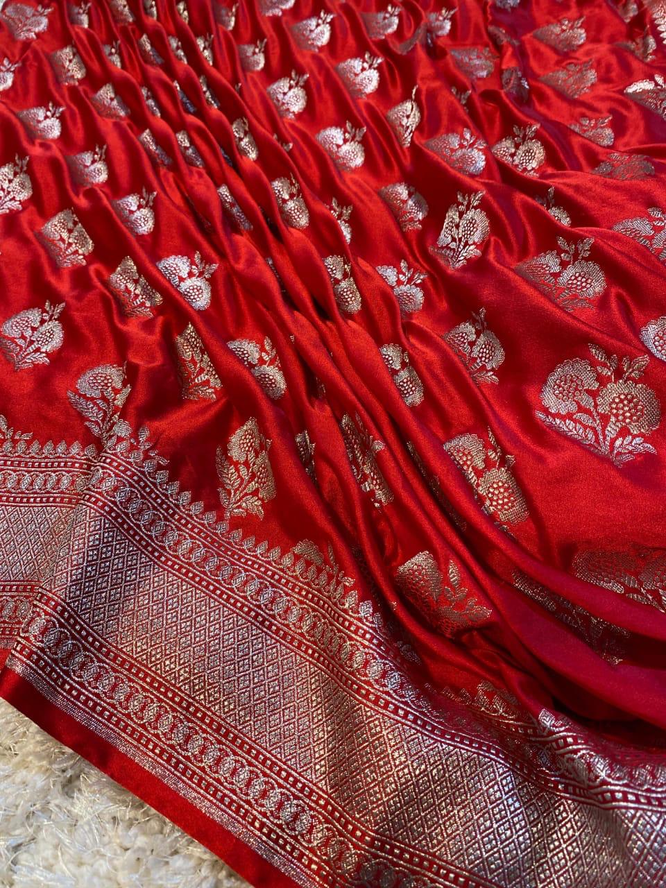Banarasi Pure Mashroo Silk Saree - Red, Yellow, Onion Pink and more .