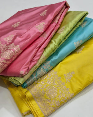 Banarasi Pure Mashroo Silk Saree - Red, Yellow, Onion Pink , Green and more