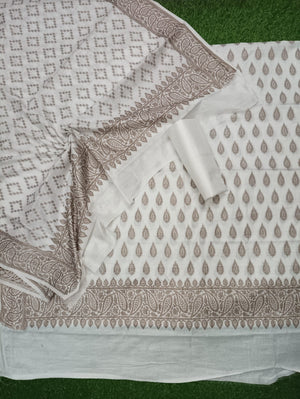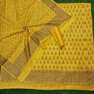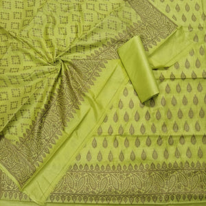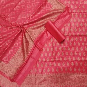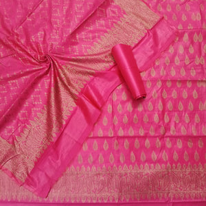 A beautiful banarasi Resham weaving cotton duping silk suit fabric with Resham weaving, a splendid designer dupatta, butti design kurta with an elegant border at the bottom and solid bottom.