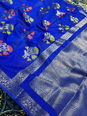 Banarasi Semi Georgette Alfi Saree is a must-have for all saree lovers it is a blend of beauty and elegance. It has both Banarasi weave and traditional Alfi work on the entire cloth. It is warm and attractive, making it ideal for celebrations.