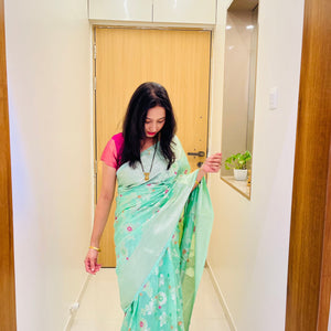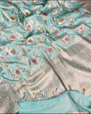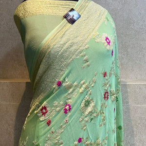 Banarasi Semi Georgette Alfi Saree - Yellow, Black, Purple, Red, Maroon, Light blue, Pista Green, Pink