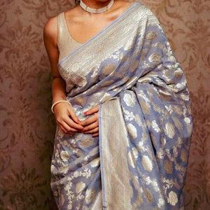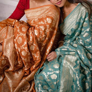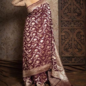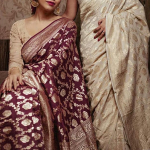 Banarasi Semi Georgette Silk Saree - Beige, Maroon, Sea Blue -Green, Onion Light Pink, Orange and Light Purple.