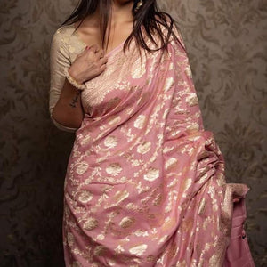 Banarasi Semi Georgette Silk Saree is a must-have for all saree lovers it is a blend of beauty and elegance. It has both Banarasi weave and traditional Jari work on the entire cloth. It is warm and attractive, making it ideal for celebrations.