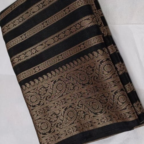 | Fabric | Banarasi Semi Georgette Silk Saree With Rich Jari Woven Pallu. |