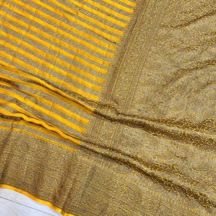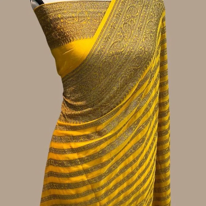 Banarasi Semi Georgette Silk Saree With Rich Jari Woven Pallu - Yellow, Pink, White, Black and Maroon