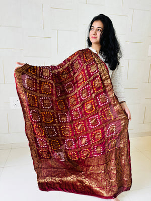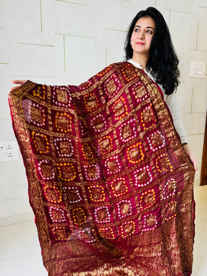 Banarasi Silk Ghatchola Bridal Dupatta - Maroon, Red, Purple and Pink