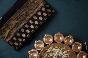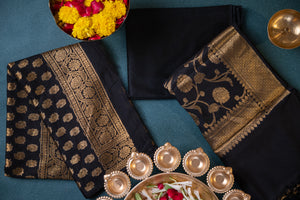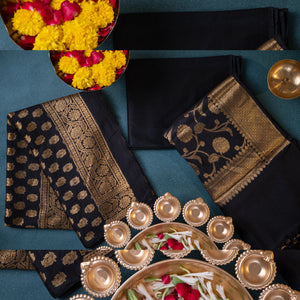Banarasi Unstitched Cotton Silk Salwar Suit Material - Black