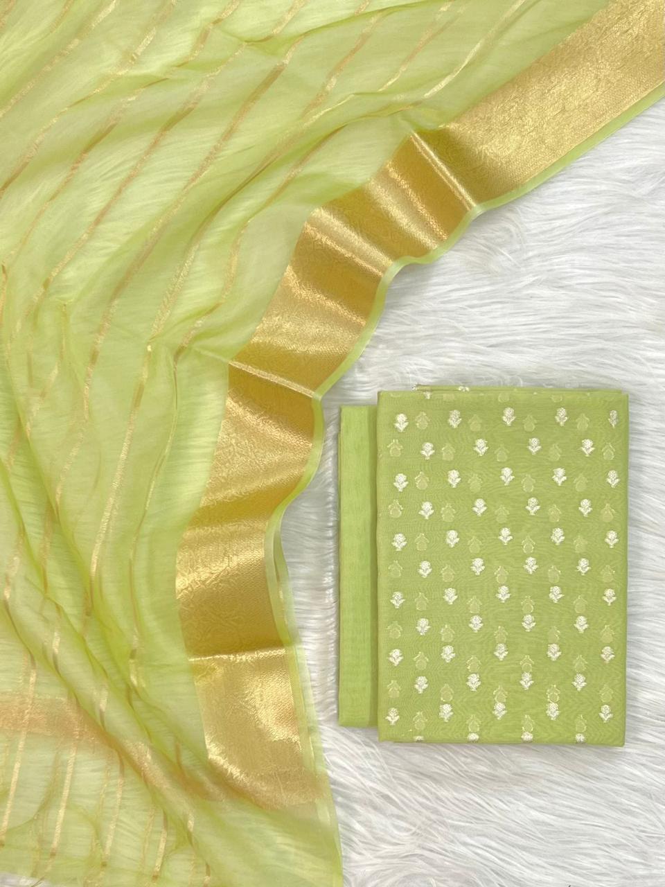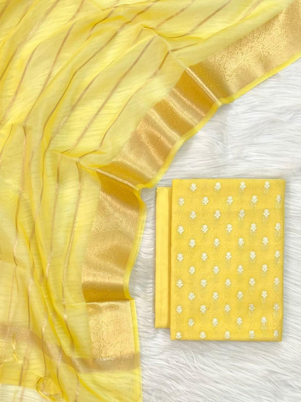 Banarasi Unstitched Dress Material/ Salwar Suit - Light Pink with embossed golden jari(Various colours available) Light Shades